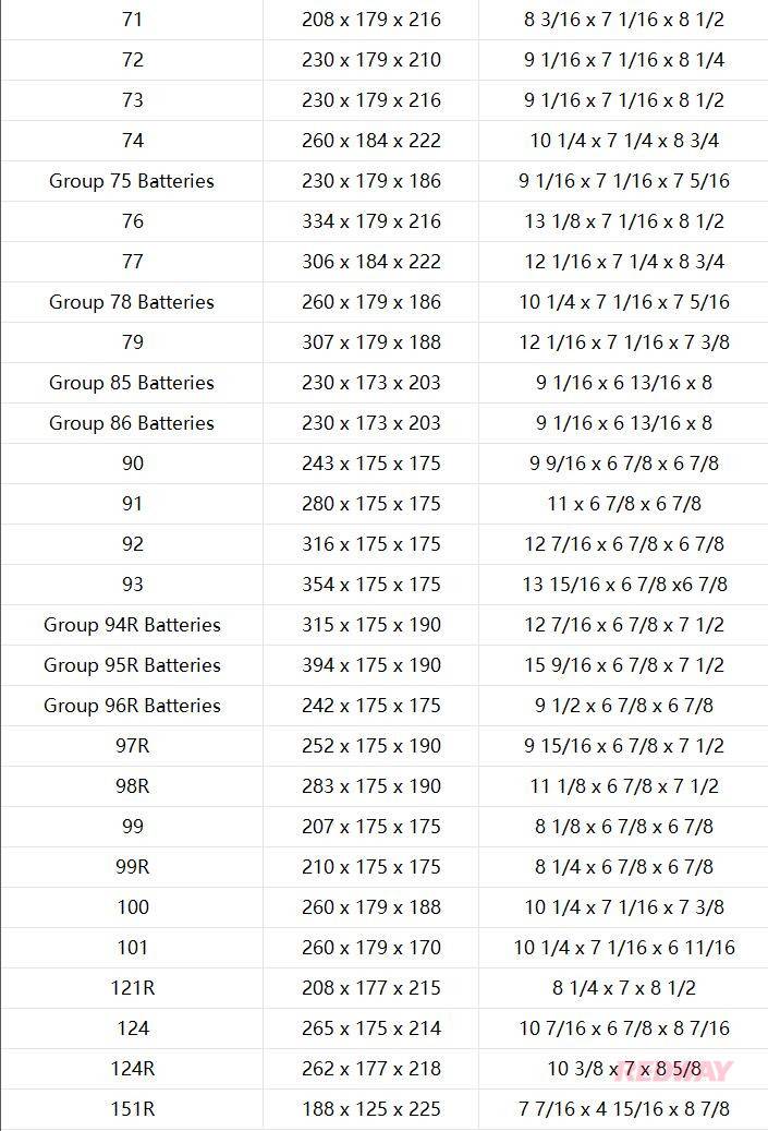 Automotive Battery Size Chart All Car Batteries Grouped By Size